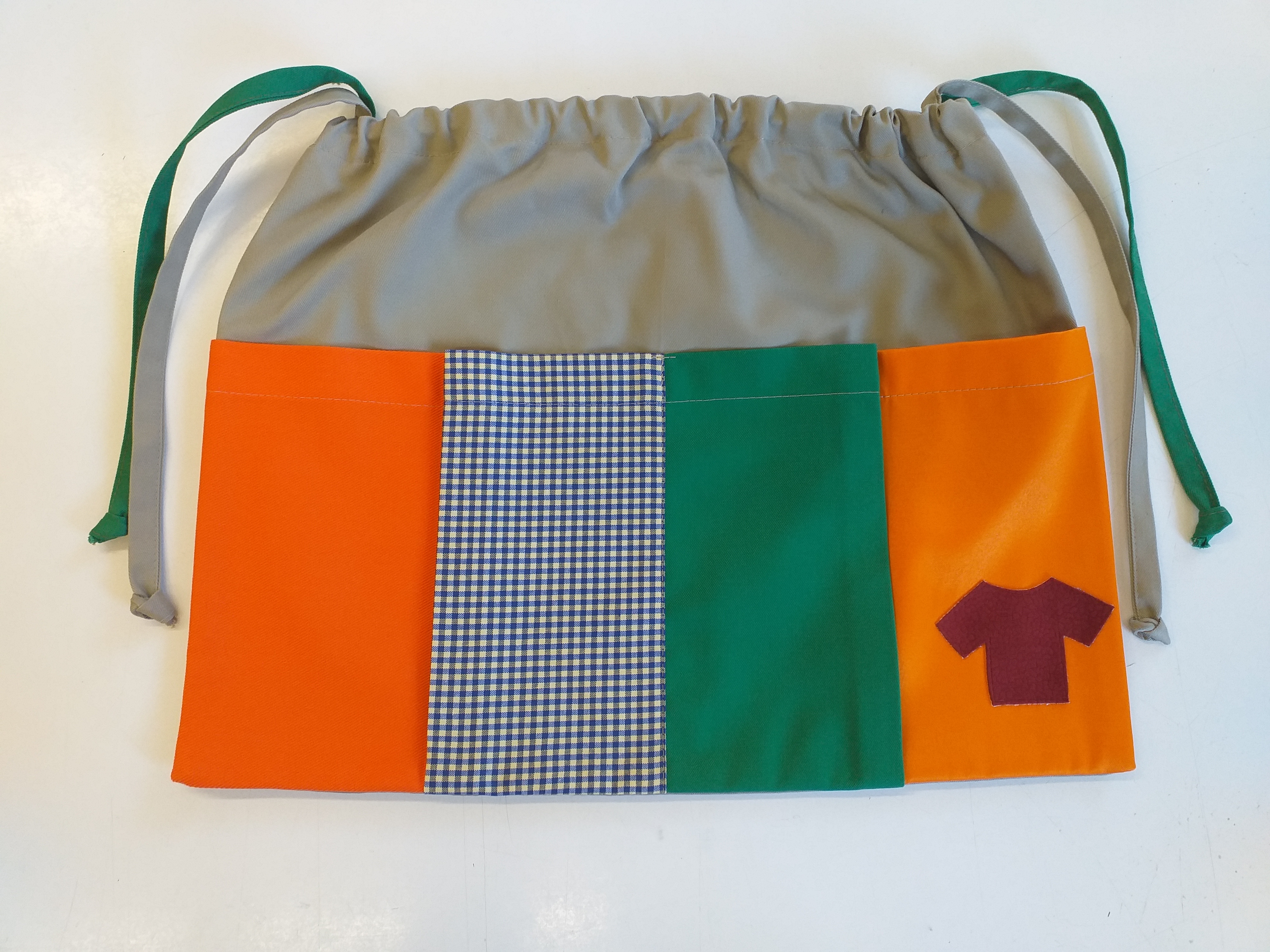 Textilní školní kapsář slouží k přehlednému uložení školních pomůcek přímo na lavici. Upevňuje se pomocí šňůrek, které umožňují snadné přivázání k horní části lavice.