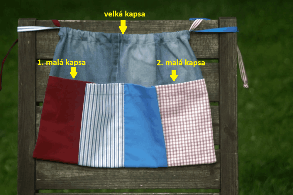 Celkem 3 kapsy: jednu velkou s gumičkou a dvě menší.