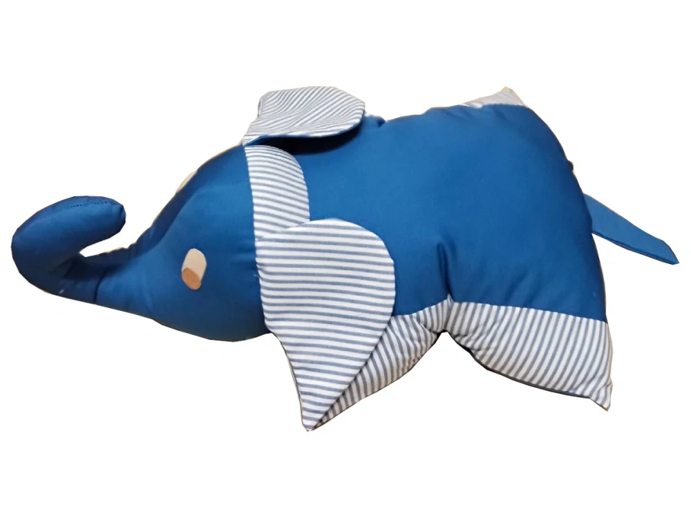 Textilní slon slouží jako dekorace i praktický polštářek. Po rozvázání mašličky na spodní straně se výrobek rozloží a lze jej použít pro odpočinek, například při cestování.