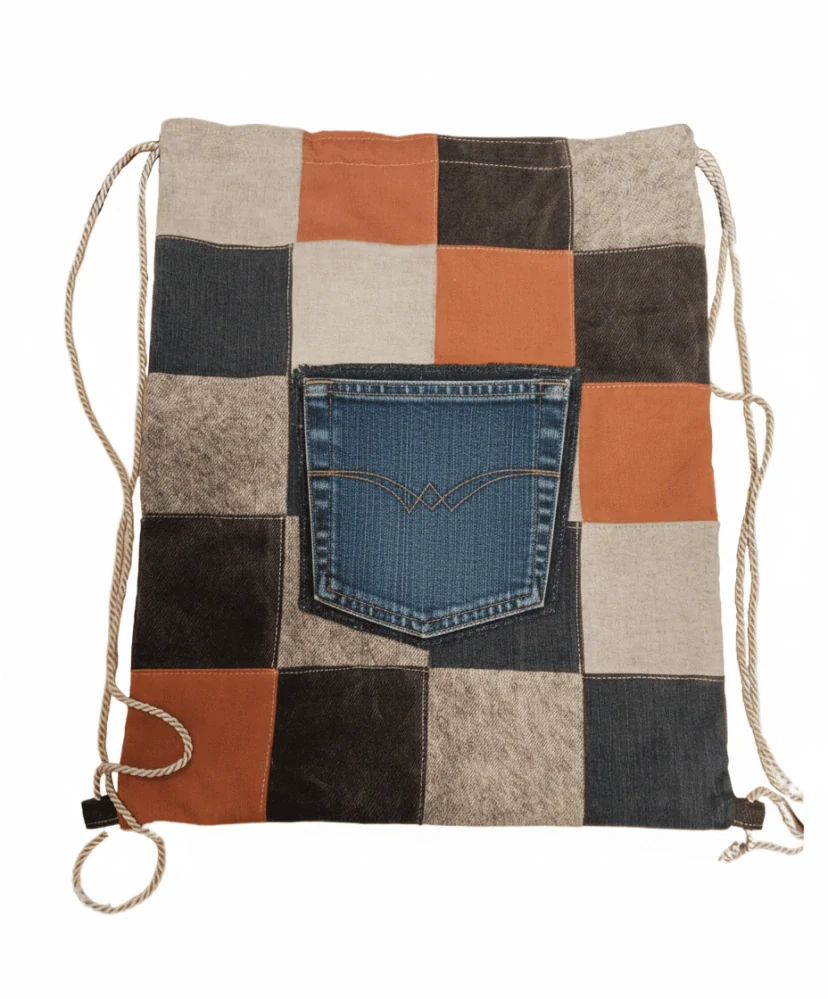 Batoh je ušit z pevné džínoviny, která je odolná vůči běžnému opotřebení. Jednoduchá konstrukce bez zipu snižuje riziko poruchy a usnadňuje manipulaci.